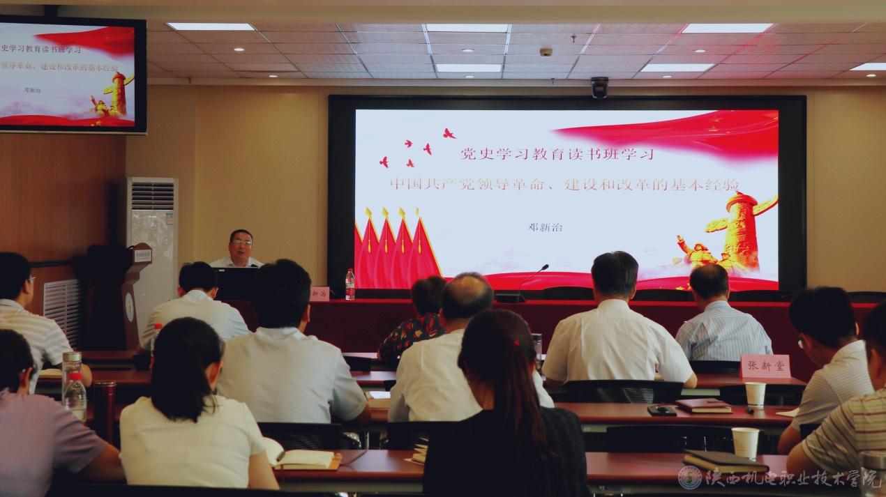 然后,黨委副書記 鄧新治同志以《中國共產(chǎn)黨領(lǐng)導(dǎo)革命、建設(shè)和改革的基本經(jīng)驗》為題進(jìn)行專題黨課講授,鄧新治從新民主主義革命時期、社會主義革命和建設(shè)時期、改革開放和社會主義現(xiàn)代化建設(shè)新時期以及中國特色社會主義新時代四個偉大的歷史時期出發(fā)系統(tǒng)闡述了我黨領(lǐng)導(dǎo)的革命、建設(shè)和改革中都留下了寶貴的精神財富和基本經(jīng)驗。