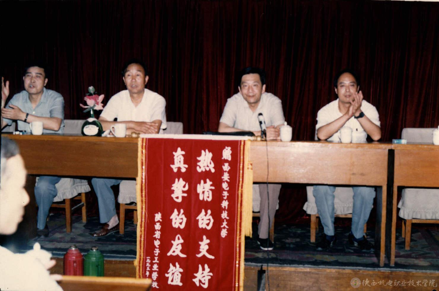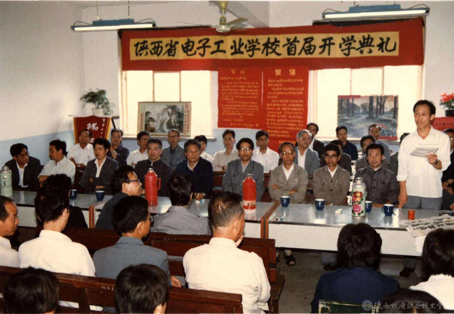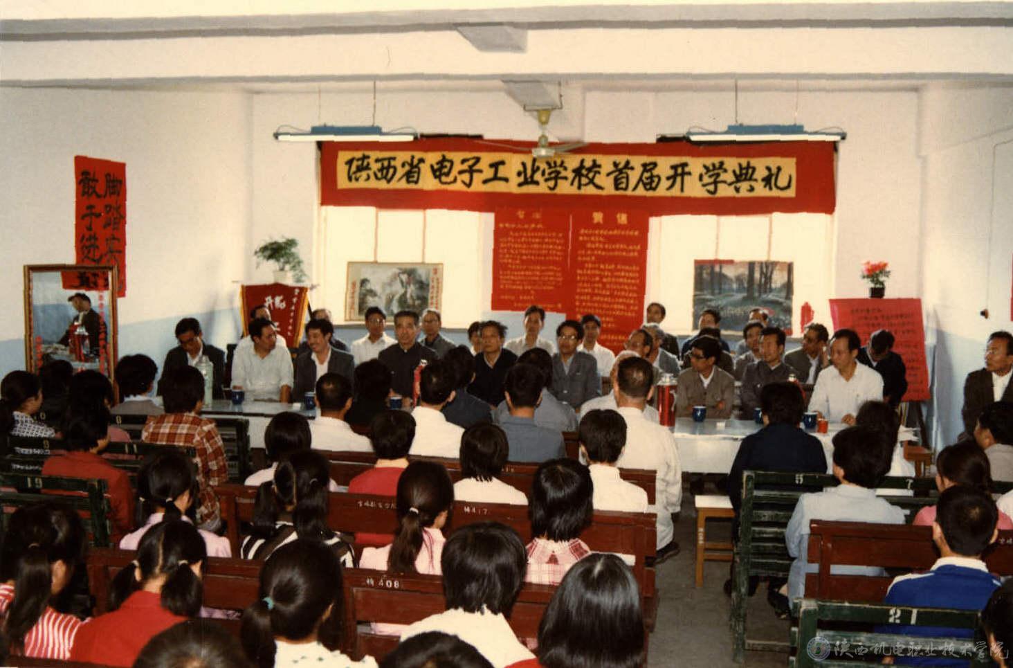 陜西省電子工業(yè)學校正式成立于1987年10月15日,共十一位教職工。1988年9月開始招收首屆學生,共十六位教職工。成立與招生之初,學校一無學習校舍,二無實習場所,三缺專業(yè)教師。蒲樹人校長、劉敏中校長先后帶領十多位有擔當?shù)淖穳羧?,克服重重困難,風雨如晦,踏上了漫漫征途。